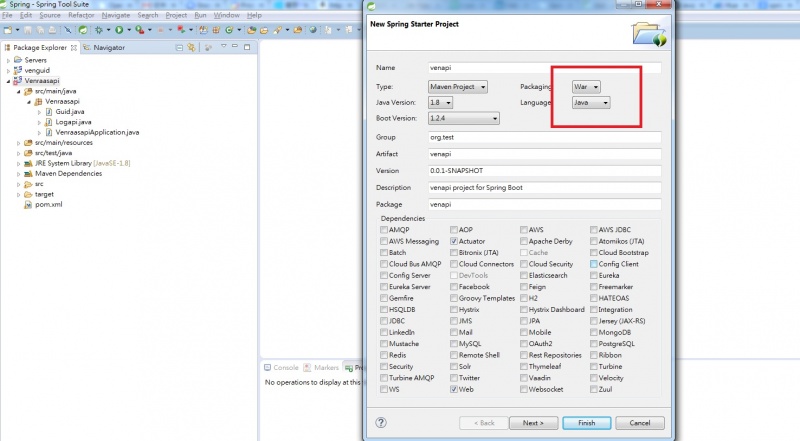 - Note: project-package type select : war file for deploying tomcat servlet api